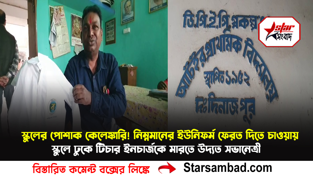 স্কুলের পোশাক কেলেঙ্কারি! নিম্নমানের ইউনিফর্ম ফেরত দিতে চাওয়ায় স্কুলে ঢুকে টিচার ইনচার্জকে মারতে উদ্যত সভানেত্রী। আতঙ্কে আটইর প্রাথমিক স্কুলের শিক্ষক-শিক্ষিকারা