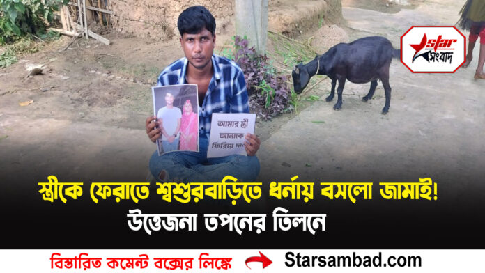 বালুরঘাট, ১৯ সেপ্টেম্বর ——- স্ত্রীকে ফেরাতে শ্বশুড়বাড়িতে ধর্নায় বসলো জামাই। হাতে পোস্টার, সামনে বিয়ের ছবি আর কণ্ঠে আর্তি— “আমার স্ত্রীকে ফিরিয়ে দাও”। শুক্রবার দুপুর থেকে এই ঘটনাকে ঘিরে তুমুল হুলুস্থুল পরিস্থিতি তৈরি হয় দক্ষিন দিনাজপুর জেলার তপনের তিলন অর্জুনপুর এলাকায়। জামাই সমীর হেমব্রমের দাবি, আমরা সাবালক। উভয়ে আলোচনা করেই প্রথমে রেজিস্ট্রি এবং তারপরে বিয়ের সিদ্ধান্ত নিই।
