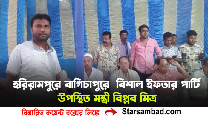 হরিরামপুর: পবিত্র রমজান মাস উপলক্ষে রোজাদারদের জন্য বিশেষ ইফতার পার্টির আয়োজন করা হল দক্ষিণ দিনাজপুর জেলার হরিরামপুর ব্লকে। শনিবার বাগিচাপুর অঞ্চল তৃণমূল কংগ্রেস কমিটির উদ্যোগে এবং বিশিষ্ট সমাজসেবী মিরাজুল ইসলামের আর্থিক সহযোগিতায় বাগিচাপুর গ্রাম পঞ্চায়েতের কুন্দুনা মোড় এলাকায় এই ইফতার পার্টির আয়োজন করা হয়।