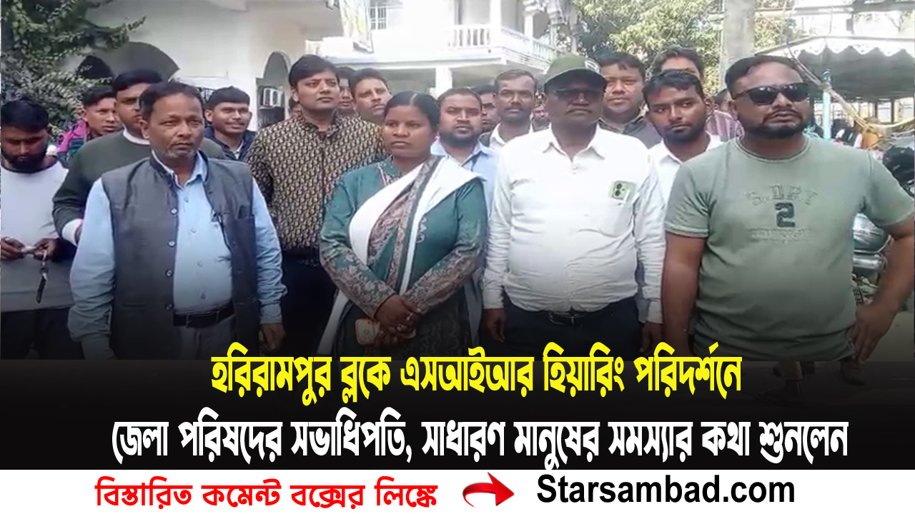 দক্ষিণ দিনাজপুর জেলার হরিরামপুর ব্লকে শনিবার SIR (স্পেশাল ইনটেনসিভ রিভিশন) সংক্রান্ত হিয়ারিং চলাকালীন পরিদর্শনে আসেন জেলা পরিষদের সভাধিপতি চিন্তামণি বিহা। এই হিয়ারিংয়ে অংশ নিতে এসে সাধারণ মানুষ সমস্যার সম্মুখীন হচ্ছেন কি না সেই বিষয়ে খোঁজ খবর নেন তিনি। সব সমস্যার কথা সরাসরি শুনতে সাধারণ মানুষের সঙ্গে কথা বলেন জেলা পরিষদের সভাধিপতি।