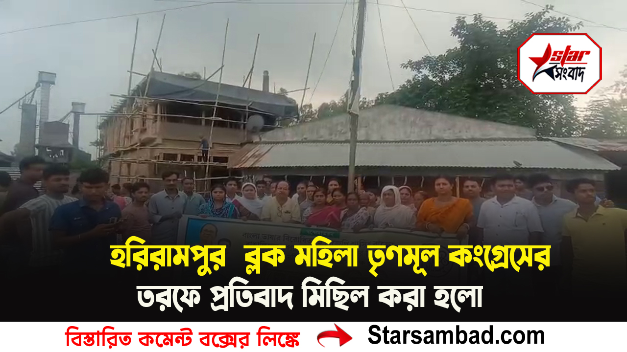 হরিরামপুর:-বাংলা ভাষার বিরোধিতা,বিজেপি শাসিত রাজ্যে বাঙালির উপর অত্যাচার ও SIR এর বিরুদ্ধে মহিলা তৃণমূল কংগ্রেসের তরফে প্রতিবাদ মিছিল করা হলো এলাকাজুড়ে।শনিবার বিকালে দক্ষিণ দিনাজপুর জেলার হরিরামপুরে,হরিরামপুর ব্লক মহিলা তৃণমূল কংগ্রেসের তরফে প্রতিবাদ মিছিলটি করা হয়।এদিন হরিরামপুর তৃণমূলের দলীয় কার্যালয় থেকে শুরু করে প্রতিবাদ মিছিলটি হরিরামপুরের বিভিন্ন এলাকা ঘুরে পুনরায় হরিরামপুর তৃণমূলের দলীয় কার্যালয়ে এসে শেষ হয়।