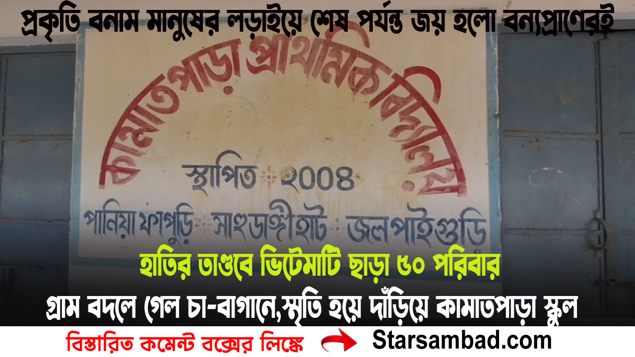 হাতির তাণ্ডবে ভিটেমাটি ছাড়া ৫০ পরিবার।গ্রাম বদলে গেল চা-বাগানে,স্মৃতি হয়ে দাঁড়িয়ে কামাতপাড়া স্কুল।প্রকৃতি বনাম মানুষের লড়াইয়ে শেষ পর্যন্ত জয় হলো বন্যপ্রাণেরই
