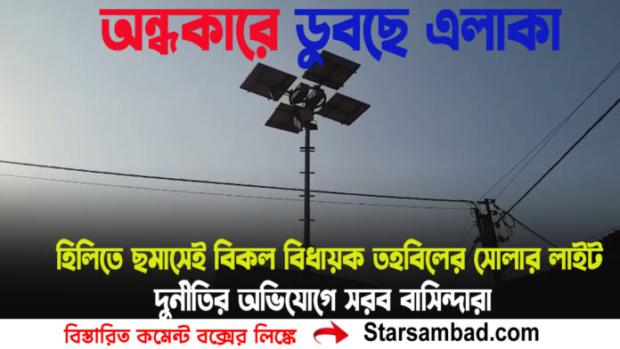 হিলিতে ছমাসেই বিকল বিধায়ক তহবিলের সোলার লাইট! অন্ধকারে ডুবছে এলাকা, দুর্নীতির অভিযোগে সরব বাসিন্দারা