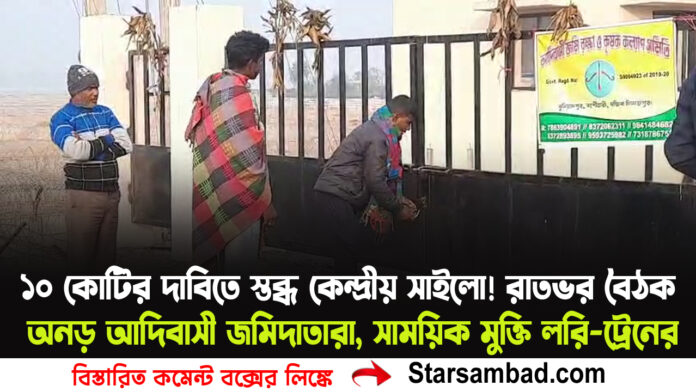 বালুরঘাট, ২৮ জানুয়ারী —- জমি ফেরতের দাবিতে আদিবাসী কৃষকদের টানা আন্দোলনে কার্যত স্তব্ধ হয়ে গেল ফুড কর্পোরেশন অফ ইন্ডিয়ার অধীনস্থ কেন্দ্রীয় সাইলো প্রকল্প। মঙ্গলবার সকাল থেকে গভীর রাত পর্যন্ত জেলা প্রশাসনের সঙ্গে ম্যারাথন বৈঠক চললেও কোনও সমাধানসূত্র মিলল না। বরং ক্ষতিপূরণ হিসেবে সাইলো কর্তৃপক্ষের কাছে ১০ কোটি টাকার দাবি তুলে আন্দোলনের চাপ আরও বাড়ালেন জমিদাতারা। শেষমেশ প্রশাসনিক অনুরোধে মানবিক কারণে ৪৮ ঘণ্টার জন্য সাইলোর তালা খুলে আটকে থাকা প্রায় ৫০টি লরি ও দীর্ঘ ১৭ দিন ধরে থমকে থাকা মালবাহী ট্রেন ছেড়ে দেওয়ার অনুমতি দেওয়া হয়। তবে সাইলো সম্পূর্ণ বন্ধই থাকছে—এই বার্তায় স্পষ্ট আন্দোলনকারীদের কঠোর অবস্থান।