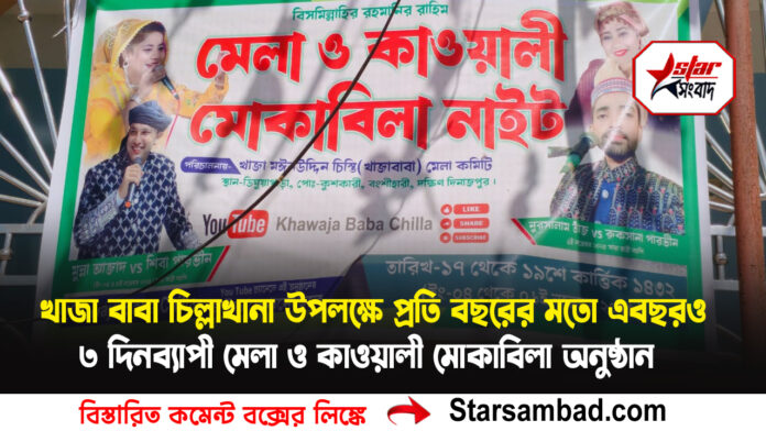 খাজা বাবা চিল্লাখানা উপলক্ষে প্রতি বছরের মতো এবছরও ৩ দিনব্যাপী মেলা ও কাওয়ালী মোকাবিলা অনুষ্ঠান অনুষ্ঠিত হতে চলেছে কুশকারীর ডিঘুয়াপারা এলাকায়।