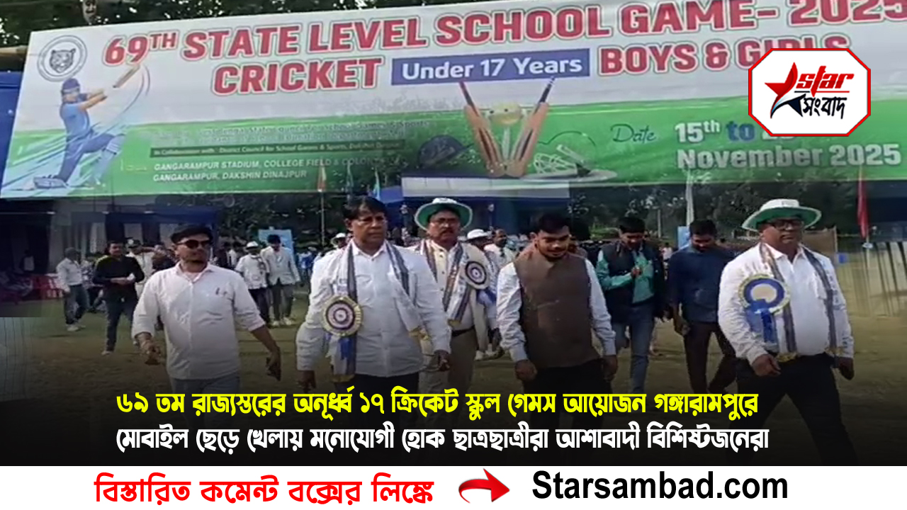 ১৫ নভেম্বর দক্ষিণ দিনাজপুর।ছাত্র–ছাত্রীরা মোবাইল থেকে দূরে সরে খেলাধুলার প্রতি আরও আগ্রহী হয়ে উঠুক—এই লক্ষ্যেই অনুষ্ঠিত হল ৬৯তম রাজ্যস্তরের অনূর্ধ্ব ১৭ ক্রিকেট স্কুল গেমস। দক্ষিণ দিনাজপুর জেলার গঙ্গারামপুর পুরসভার ৮নম্বর ওয়ার্ডের ইন্দ্র নারায়ণপুর কলোনি মাঠে শনিবার এই প্রতিযোগিতার সূচনা হয়।
