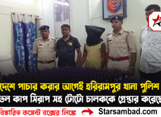 হরিরামপুর থানা পুলিশ ২৪৬ বোতল কাপ সিরাপ সহ টোটো চালককে গ্রেপ্তার করেছে