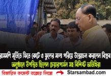 বুনিয়াদপুর শহরে রানী রাসমণি স্থাপত্য মূর্তিতে ফিতে কেটে ও মূর্তিতে ফুলের…