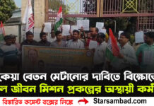 বকেয়া বেতন মেটানোর দাবিতে বিক্ষোভে জল জীবন মিশন প্রকল্পের অস্থায়ী কর্মীরা