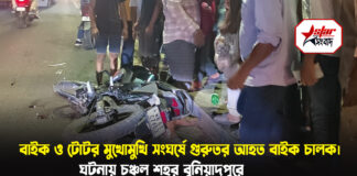 বাইক ও টোটোর মুখোমুখি সংঘর্ষে গুরুতর আহত যুবক, চাঞ্চল্য বুনিয়াদপুরে