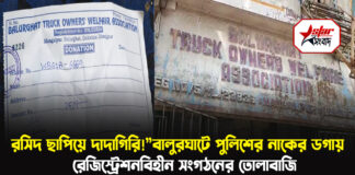 রসিদ ছাপিয়ে দাদাগিরি!”বালুরঘাটে পুলিশের নাকের ডগায় রেজিস্ট্রেশনবিহীন সংগঠনের তোলাবাজি