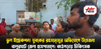 ভুল ইঞ্জেকশন! যুবকের রহস্যমৃত্যুর অভিযোগে উত্তেজনা বালুরঘাট জেলা হাসপাতালে
