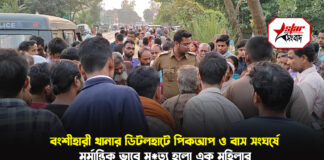 পিকআপ ও বাস সংঘর্ষে মর্মান্তিক ভাবে মৃত্যু হলো এক মহিলার
