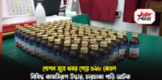 গোপন সূত্রে খবর পেয়ে ৫৯৮ বোতল নিষিদ্ধ কাফসিরাপ উদ্ধার, চারচাকা গাড়ি…