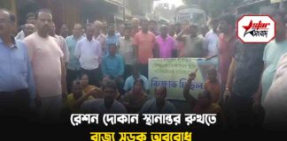 রেশন দোকান স্থানান্তরের প্রতিবাদে বিক্ষোভ গঙ্গারামপুরের ৭নম্বর ওয়ার্ডের বড় বাজারে
