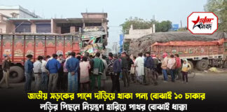 ১০ চাকার লড়ির পিছনে নিয়ন্ত্রণ হারিয়ে পাথর বোঝাই ধাক্কা