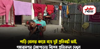 শাড়ি বোনার কাজে ব্যস্ত দুই প্রতিবন্ধী ভাই