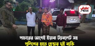বাংলাদেশে পাচারের আগেই ইয়াবা ট্যাবলেট সহ পুলিশের হাতে গ্রেপ্তার দুই ব্যক্তি