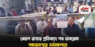 বেহাল রাস্তার প্রতিবাদে পথ অবরোধ গঙ্গারামপুরে সর্বমঙ্গলাতে