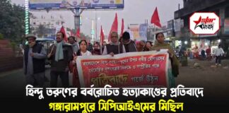 বাংলাদেশে সংখ্যালঘু হিন্দু তরুণের বর্বরোচিত হত্যাকাণ্ডের প্রতিবাদে গঙ্গারামপুরে