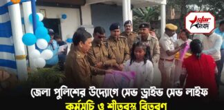 জেলা পুলিশের উদ্যোগে ‘সেভ ড্রাইভ সেভ লাইফ’ কর্মসূচি ও শীতবস্ত্র বিতরণ
