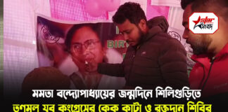 মুখ্যমন্ত্রী মমতা বন্দ্যোপাধ্যায়ের জন্মদিনে শিলিগুড়িতে তৃণমূল যুব কংগ্রেসের কেক কাটা ও...