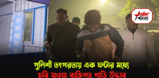 পুলিশী তৎপরতায় এক ঘন্টার মধ্যেই চুরি যাওয়া ব্যক্তিগত গাড়ি উদ্ধার