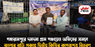 গঙ্গারামপুরে দমদমা গ্রাম পঞ্চায়েত অফিসের সামনে বাংলার বাড়ি প্রকল্পে দ্বিতীয় কিস্তির...