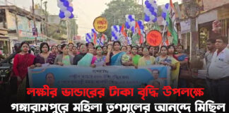 লক্ষীর ভান্ডারের টাকা বৃদ্ধি উপলক্ষে গঙ্গারামপুরে মহিলা তৃণমূলের আনন্দে মিছিল