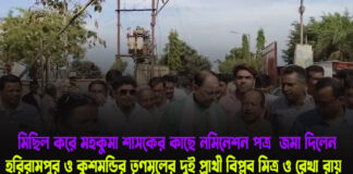 বুনিয়াদপুর শহরে মিছিল করে মহকুমা শাসকের কাছে নমিনেশন পত্র জমা...