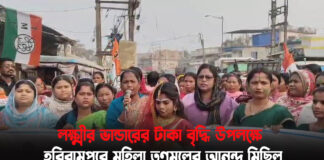 হরিরামপুর:লক্ষ্মীর ভান্ডারের টাকা বৃদ্ধি উপলক্ষে হরিরামপুরে মহিলা তৃণমূলের আনন্দ মিছিল