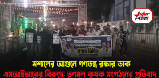 মশালের আগুনে গণতন্ত্র রক্ষার ডাক! এসআইআরের বিরুদ্ধে বালুরঘাটে তৃণমূল কৃষক সংগঠনের...