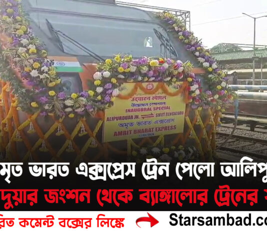 দুটি অমৃত ভারত এক্সপ্রেস ট্রেন পেলো আলিপুরদুয়ার, এদিন আলিপুরদুয়ার জংশন রেলস্টেশন থেকে আলিপুরদুয়ার থেকে ব্যাঙ্গালোর ট্রেনের যাত্রা শুরু হল