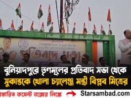 বুনিয়াদপুরে তৃণমূলের প্রতিবাদ সভা থেকে সুকান্তকে খোলা চ্যালেঞ্জ মন্ত্রী বিপ্লব মিত্রের