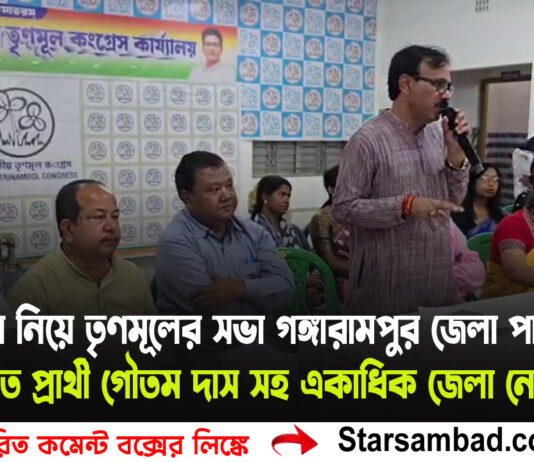 গঙ্গারামপুরে মহিলাদের নিয়ে তৃণমূলের গুরুত্বপূর্ণ সভা গঙ্গারামপুর নিউ মার্কেটের তৃণমূল জেলা পার্টি অফিসে ,উপস্থিত প্রার্থী গৌতম দাস সহ একাধিক জেলা নেতৃত্বরা