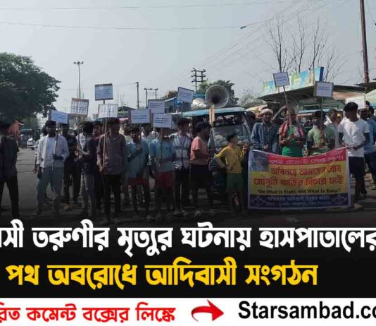 আদিবাসী তরুণীর মৃত্যুর ঘটনায় হাসপাতালের সামনে পথ অবরোধে আদিবাসী সংগঠন