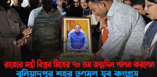 রাজ্যের মন্ত্রী বিপ্লব মিত্রের ৭৩ তম জন্মদিন পালন করলেন বুনিয়াদপুর শহর...