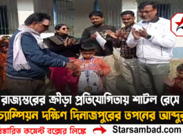 নিজের সঙ্গেই লড়াই করে সেরার শিরোপা রাজ্যস্তরের ক্রীড়া প্রতিযোগিতায় শাটল রেসে চ্যাম্পিয়ন দক্ষিণ দিনাজপুরের তপনের আব্দুর