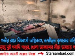 গভীর রাতে বিধ্বংসী অগ্নিকাণ্ড, ভস্মীভূত কৃষকের বাড়ি—পুড়ে মৃত্যু দুই গবাদি পশুর,…