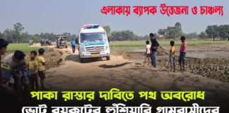 পাকা রাস্তার দাবিতে পথ অবরোধ, ভোট বয়কটের হুঁশিয়ারি গ্রামবাসীদের