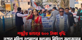 লক্ষ্মীর ভান্ডারে ৫০০ টাকা বৃদ্ধি তপনে মহিলা তৃণমূলের ধন্যবাদ মিছিলে জনজোয়ার