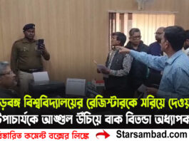 গৌড়বঙ্গ বিশ্ব বিদ্যালয়ের রেজিস্টারকে সরিয়ে দেওয়ায় উপাচার্যকে আঙ্গুল উঁচিয়ে বাক বিতন্ডা অধ্যাপকদের একাংশের, অধ্যাপকদের ভূমিকা নিয়ে ক্ষোভ প্রকাশ উপাচার্যের, বিশ্ববিদ্যালয়ের অরাজজ্ঞতা নিয়ে তৃণমূল বিজেপির...