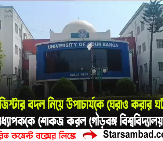 রেজিস্টার বদল নিয়ে উপাচার্যকে ঘেরাও করার ঘটনায় গৌড়বঙ্গ বিশ্ববিদ্যালয়ের দুই অধ্যাপক কে শোকজ করল বিশ্ববিদ্যালয় কর্তৃপক্ষ