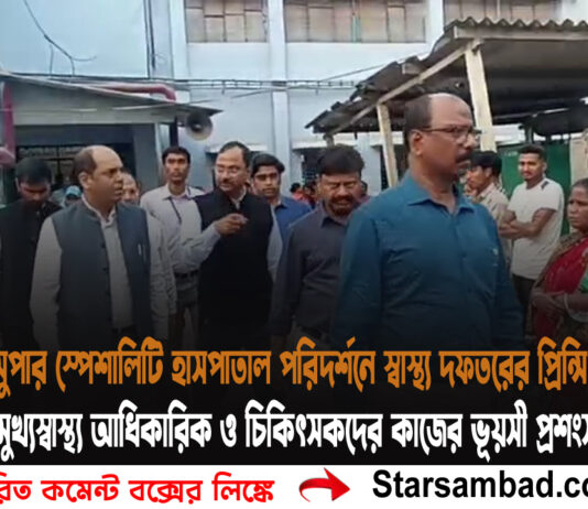 গঙ্গারামপুর সুপার স্পেশালিটি হাসপাতাল পরিদর্শনে স্বাস্থ্য দফতরের প্রিন্সিপাল সেক্রেটারি মুখ্যস্বাস্থ্য আধিকারিক ও চিকিৎসকদের কাজের ভূয়সী প্রশংসা