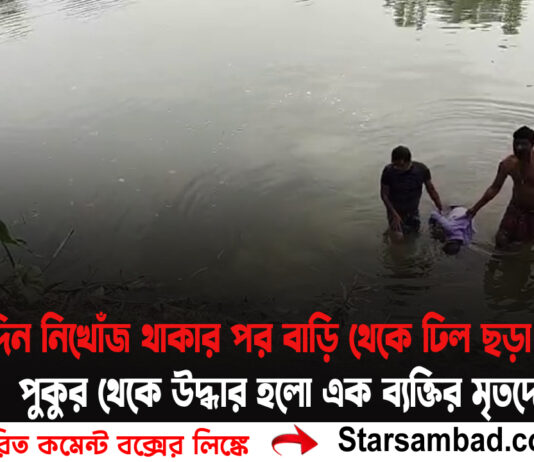 দুই দিন নিখোঁজ থাকার পর বাড়ি থেকে ঢিল ছড়া দুরত্বে পুকুর থেকে উদ্ধার হলো এক ব্যক্তির মৃতদেহ