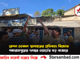 রেশন দোকান স্থানান্তরের প্রতিবাদে বিক্ষোভ গঙ্গারামপুরের ৭নম্বর ওয়ার্ডের বড় বাজারে