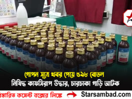 গোপন সূত্রে খবর পেয়ে ৫৯৮ বোতল নিষিদ্ধ কাফসিরাপ উদ্ধার, চারচাকা গাড়ি…